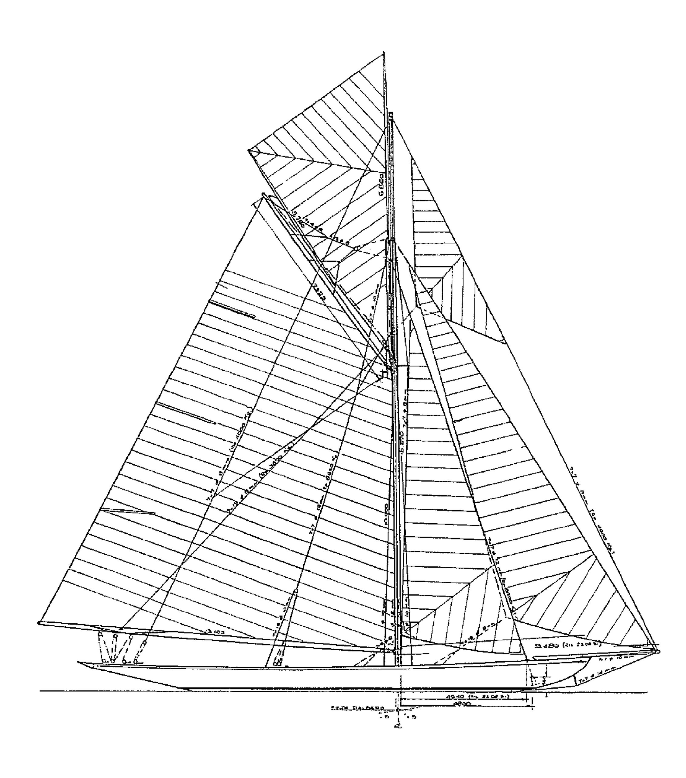 Designed as a racing boat, CINTRA originally did not provide internal cruise equipment, and this was now added in a minimalistic style: a living room entrance with the chart table, two banks with leather seating, followed by a kitchen and a toilet. The bow section was left completely open, optimized for sail handling. For the above reasons the boat initially contained no engine, but the modern requirements of port manoeuvers imposed a small engine, a Perkins 20 HP, housed in a machine room which also houses tanks and batteries. The mast and sails were completely redone since the boat in the course of its history had repeatedly changed the type of rigging. Everything had to be reconstructed as provided by Fife. The mast measures 24.65 metres, the gaff 8.05 metres and the boom 13.18 metres. All made of hollow douglas, since it was virtually impossible to find the silver spruce which was probably the original material.